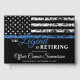 This design features a police force flag with black and white stripes, and a thin blue line stripe as well. "The Legend is Retiring" text sits above the customisable name of the retiring law enforcement officer, sheriff, captain, or chief. Celebrate this milestone in style!