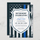 Salute a career of service with our 'Police Retirement' Thin Blue Line Flag Invitation. This unique design pays homage to a dedicated officer's journey, featuring the iconic Thin Blue Line Flag for a touch of patriotism. Perfect for a respectful retirement celebration, this invitation captures the essence of a well-deserved tribute. Fully customisable for a personal touch, order now and let this invite set the stage for an honorable and memorable retirement event.