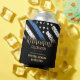 This design features a police force flag with black and white stripes, and a thin blue line stripe as well. "Retirement Celebration" sits above all of the details for the retiring law enforcement officer, sheriff, captain, or chief.