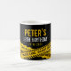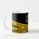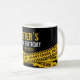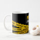 Personalised Police themed Birthday mug with police tape design with yellow warning stripes pattern and crime scene do not cross text.