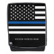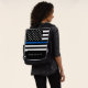 This backpack features a black and white police thin blue line American flag and a name for you to personalise.