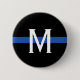 This police thin blue line button has a horizontal blue stripe on a black background and a monogram initial in white for you to personalise.