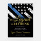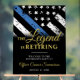 This design features a police force flag with black and white stripes, and a thin blue line stripe as well. "The Legend is Retiring" text sits above all of the party details for the retiring law enforcement officer, sheriff, captain, or chiefs retirement party details.