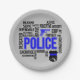 These plates have the word Police in blue along with multiple words that describe what a police officer is and does. These would be great for a police retirement party or a party for someone who graduated from the police academy or any police activity.
