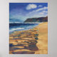 A remote far west beach on Kauai. The formations in the sand are hard limestone, which are sometimes exposed when the loose sand is swept away by the waves. The cliff face in the background is the beginning of the rugged Na Pali Coast.
