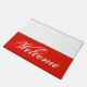 Polish flag door mat with custom welcome text for Poland home or store. Make your own custom door mat for country chic home, restaurant, hotel, business, office, company, shop etc. Add your own welcome message, family name, monogram, store name or funny quote. Cute gift idea for new home housewarming party. Custom colour background. Vintage rustic typography. Personalizable doormat sign template. Create your own entry mat / rug for front door / entryway or hall. Customisable home decor / decorations for your house or store. Upload your own image.