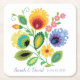 Polish Folk Flowers Yellow Wedding Square Paper Coaster