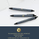 Introducing our custom notary business pen that is perfect for notaries and signing agents alike! This professional and classic gold monogram initial pen is perfect for professionals looking to make a statement with their promotional products. The printed gold circle monogram adds a touch of simple sophistication, against a dark blue background while including the notary business contact information. Use as a customer appreciation gift, or giveaway including it in a client gift set, this pen is sure to impress, or leaving them at the signing table. Enhance your business visibility with this high-quality and eye-catching promotional pen for notaries.