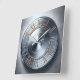 polished nickel round plate wall clock, metal look, industrial style, scratches and circles,