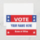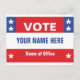 Your custom political campaign card with red, white, and blue graphic and stars. Personalise with your candidate name and the name of the office.