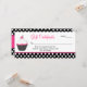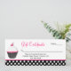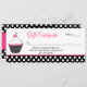Pretty bakery business gift certificate done in white and pink with a black and white polka dot accent. Whimsical graphics of a pink, white, and black cupcake decorates the left side, of the card. Text is ready to personalise to suit your business needs. Matching business cards are available.