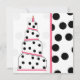 A birthday party invitation featuring a pink, black, and white colour scheme. Front features an illustration of a birthday cake with four rounded off centred tiers. Each tier is light pink on top with hot pink and black lines at centre and black polka dots over white on bottom. Candle on top. Back ground is sheer pink polka dots. Side image matches bottom portion of cake. Back image matches side. Personalise with details of your event.