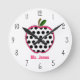 A clock for teachers featuring an illustration of a polka dot apple. Personalise with your teacher's name in pink.
