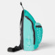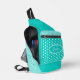 Modern girls aqua and white polka dot and name cross body bag. Personalise with your own name and initial. This example reads: Lauren B. Design by Sarah Trett for www.mylittleeden.com
