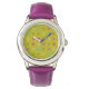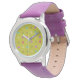 Watch is very cute--daughter likes the design on the face. Seems like good quality (we'll see how it holds up as she wears it). Very pretty design on watch face. I like that the hour and minute hands are marked, but difficult to see as type is very small (that might be my old eyes).