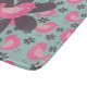 Polka dotted birds of pink and flowers of deep wine on a blue background, a cute, fun, colourful whimsical design that's great for both kids and adults.