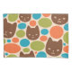 Colourful Polka Dot Cats Pattern in Brown Orange Cyan Blue & Olive Green.