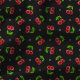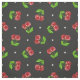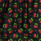 This vibrant fabric features a playful pattern of bright red cherries scattered across a deep charcoal background, complemented by small white polka dots. The rich contrast between the red cherries and the dark background creates a striking visual appeal, perfect for adding a fun and retro touch to your sewing projects. Ideal for creating unique apparel, accessories, or home decor, this fabric brings a burst of colour and charm to any design.