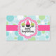 © Socialite Designs. Our fun bakery business card has three cupcakes, in a whimsical polka-dot banner, a crazy allover polka-dot pattern background and pink ribbon. All design elements can be moved, resized or deleted to suit your bakery business. Just replace our template text with your business information.