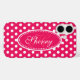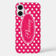 Modern girls bright red pink polka dot patterned graphic case. Perfect for personalising your iphone or as a special Christmas or birthday gift for a woman or teen girl. Personalise with your choice of name and initial. This example reads: Sherry H. Design by Sarah Trett. www.sarahtrett.com for www.mylittleeden.com on zazzle.