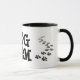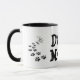 Dog pawprints with "dog mum" text with a black and white polka dot pattern.