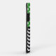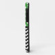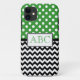 Stylish iPhone 5 Casemate Barely There Case designed with white polka dots over green on the top, a black & white chevron zigzag pattern on the bottom, and personalised with your initials in the middle.