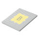 Dainty white polka dots are on a light grey background. A yellow monogram frame can be customised with your initial.