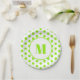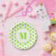 Polka Dot Monogram Initial Lime Green on White Paper Plate