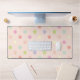 LOVE this desk mat! It's large! It fits across my desk. No need for a small mouse pad now! Color and print are excellent. Quality seems to be excellent too. Delivery was about 3 days sooner than expected. I think this is one of my favorite Zazzle products! Excellent. The color is vibrant and true to what I expected.