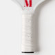 This modern pickleball paddle design features a red and white polka dot background, with your initial in bold white text for a look that is simple and stylish, yet professional.