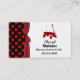 Stylish mummy networking card done in white, with pretty black and red polka dot pattern, on the left side, and edged with a red ribbon and bow. A red wagon silhouette decorates the upper white side of the card, with custom black text below it. Personalise this fun card as a great way to stay in touch with other moms for arranging parties, play dates, and baby sitting.