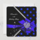 Polka Dots Blue Heart Jewel Gems Black Birthday Invitation
