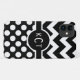 Cute girly trendy chic trio name monogram design for your first, middle and last name initial letters. Classy cool black and white polka dot and chevron pattern graphic with customisable monogrammed area. A modern abstract geometric classic personalised gift for girls.