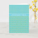 A chic birthday card with a mix'nmatch pattern of Polka Dots and a Daffodil Pattern in Pale Yellow on a Turquoise Background.