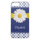 Navy blue, sunny yellow and white polka dots, daisy and ribbon personalised iPhone 6 case Barely There () case. A fun, girly design to help protect your iPhone. Personalise it with your first name.