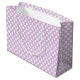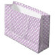 This large size paper gift bag is shown in a cute lavender and white polka dot print.