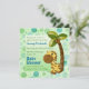 Adorable jungle theme features polka dots and pastel green and blue background with sweet baby giraffe and Coconut Palm for a cute, contemporary baby shower invitation. All text is ready for you to customise. Remember to personalise the card back text as well with registry information or delete.