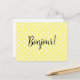 Polka dots on yellow postcard with the word BONJOUR spelled out in pretty typography letters. French for Hello.