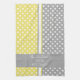 Yellow, grey and white polka dotted pattern with accent stripe personalised kitchen towels. Personalise all text as you desire. Click "customise" to resize text or change font styles.