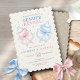 This invitation is ideally suited for couples looking for a sweet and sophisticated way to announce their baby's gender. The pastel pink and blue colour scheme is classic and timeless, while the bow and bow tie graphic adds a touch of playful charm. The design is versatile enough to suit various party styles, from intimate gatherings to larger celebrations. Whether you're planning a formal event or a casual get-together, this invitation sets the stage for a memorable and exciting gender reveal party.