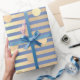 Polka Dots Stripes Champaigne Gold Blue Pastel Wrapping Paper