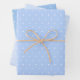 A charming and pretty set of wrapping paper with cute white polka dots on three different blue backgrounds.