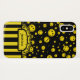 Cool tiny yellow coloured polka dot happy face pattern design on black. Retro stripe flower monogram ribbon, Personalise with your name.