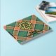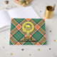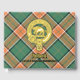 Clan Pollock crest badge surrounded by a strap and buckle over tartan background. Custom front, back and spine text.