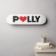 The name Polly with the letter o replaced with a red love heart. The colours can be changed.