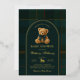 Drawing inspiration from polo club elegance and classic equestrian tradition, this teddy bear themed invitation sets the stage for a sophisticated baby shower with enduring appeal. A rich palette of deep navy and forest green, accented by a graceful statement bow, creates a look that feels both heritage-inspired and effortlessly luxurious.