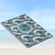 This beach theme notebook features a Polynesian ocean pattern of teal and white waves, decorated with dots, and loverly teal blue flowers. Your monogram initial and name appear on a circle of light teal, with the initial in dark teal and the name in foamy off-white. Make sure to type your information in the Personalise box.