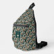 This Polynesian inspired vintage look sling bag features a pattern of palm trees and waves in green -- with a hint of teal, tan, brown, and creamy off-white. Your monogram initials appear in light tan against a colour block of dark green, along with palm trees, for a custom look. If you or your recipient loves the beach, this tropical look sling bag might be the choice for you! It's especially great or travel and school. Make sure to type your initials in the Personalise section.