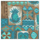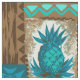 Teal, turq, aqua, cocoa and natural colorway. It is "good fortune" to have the Tiki God Ku protect you. We have surrounded him with pineapples, tribal staffs, graphic flowers and tapa elements in this whimsical design that is reminiscent of the Aloha shirt designs of the forties and fifties. There are several home decor products that coordinate. This design comes in several colorways.