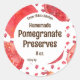 A canning jar label sticker featuring bright red pomegranates illustrated with watercolor that you can customise with your product details and personal message along with the date the product was made.